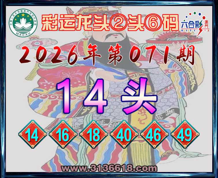 071期:《彩运龙头》  ♣️②头⑥码 ♣️【14头】开:羊48准上榜高手