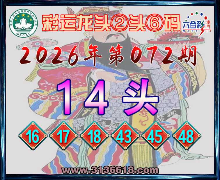 072期:《彩运龙头》  ♣️②头⑥码 ♣️【14头】开:鸡46准上榜高手