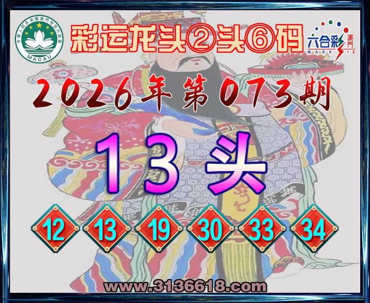 073期:《彩运龙头》  ♣️②头⑥码 ♣️【13头】开:鸡34准上榜高手
