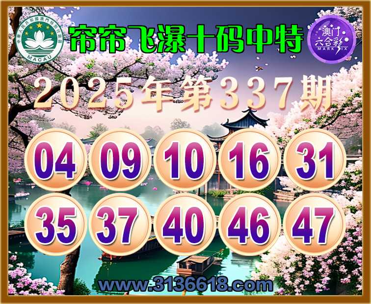 337期: 帘帘飞瀑 🏄‍♀️十码中特🏄‍♀️开:09准上榜高手