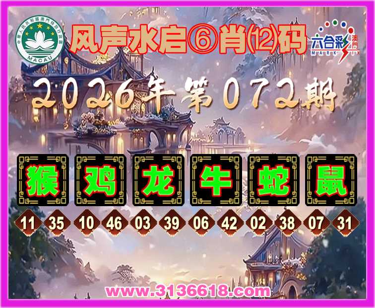 072期: ⌚《风声水启》⑥肖⑿码⌚【猴龙牛蛇鼠】开:鸡46准上榜高手