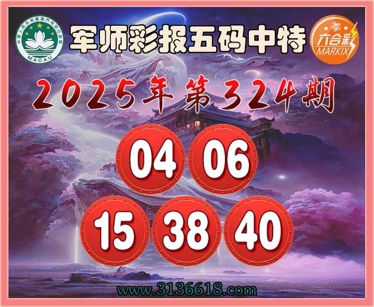 324期:『军师彩报』 🤘五码中特🤘【04.06.15.38.40】开:15准上榜高手