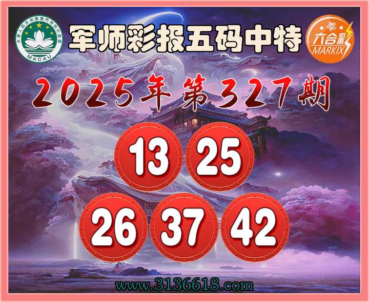 327期:『军师彩报』 🤘五码中特🤘【13.25.26.37.42】开:37准上榜高手