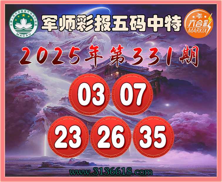 331期:『军师彩报』 🤘五码中特🤘【03.07.23.26.35】开:26准上榜高手