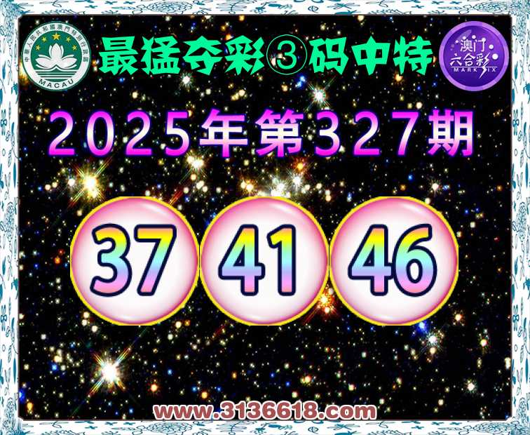 327期:『最猛夺彩』 ☘️③码中特☘️【37.41.46】开:37准上榜高手