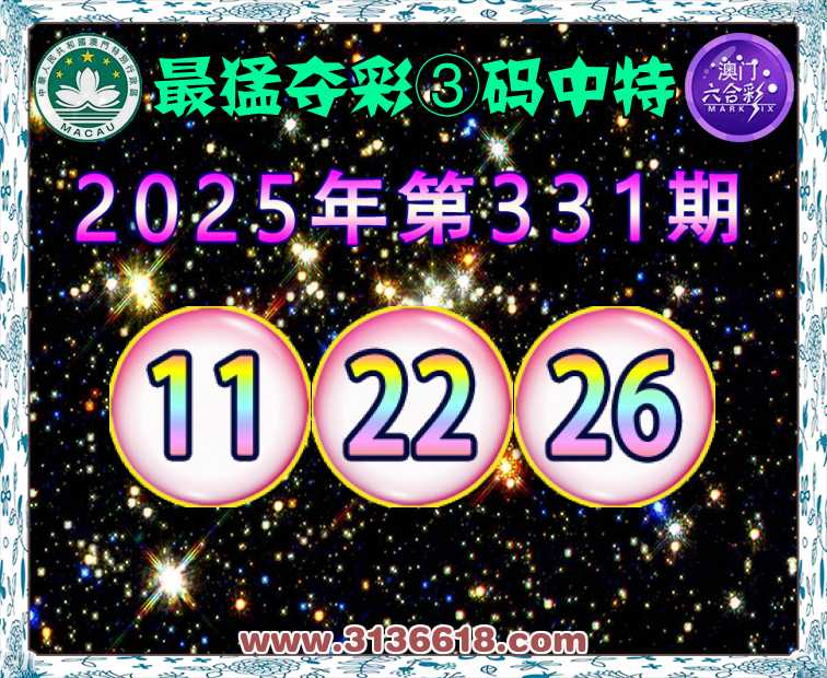 331期:『最猛夺彩』 ☘️③码中特☘️【11.22.26】开:26准上榜高手