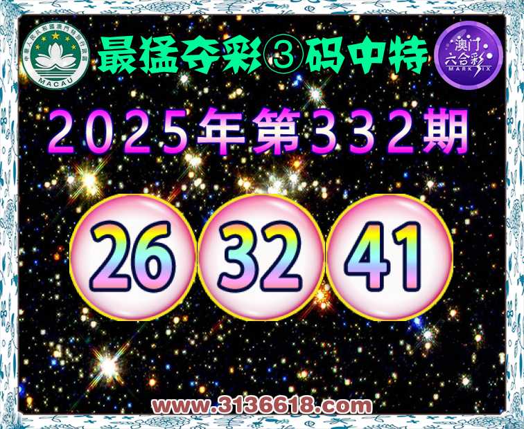332期:『最猛夺彩』 ☘️③码中特☘️【26.32.41】开:26准上榜高手