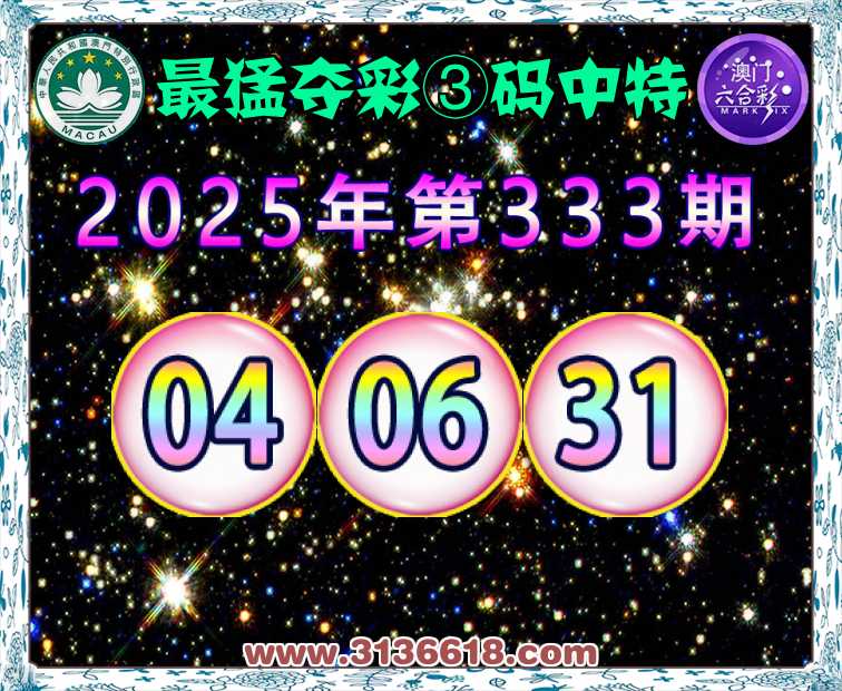 333期:『最猛夺彩』 ☘️③码中特☘️【04.06.31】开:06准上榜高手