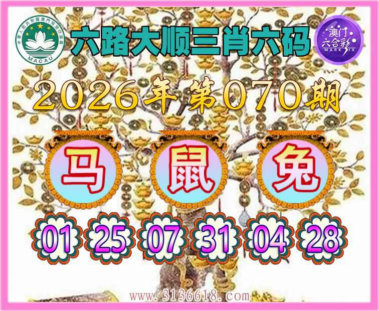 070期:『六路大顺』 😍三肖六码😍【鼠兔】开:马25准上榜高手