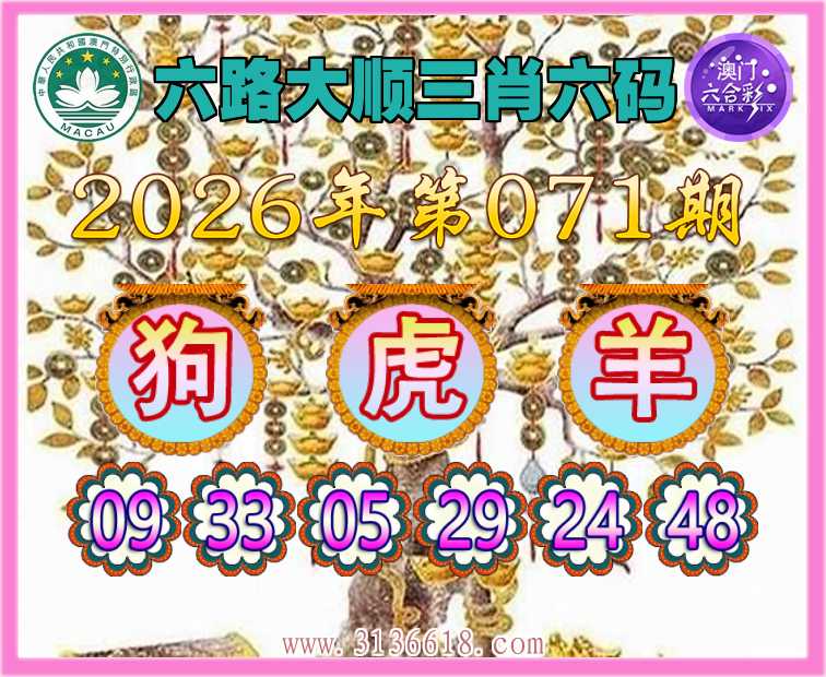 071期:『六路大顺』 😍三肖六码😍【狗虎】开:羊48准上榜高手