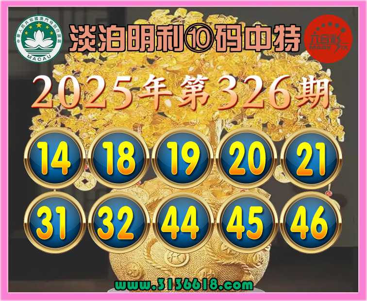 326期:【淡泊明利】 🏵️⑩码中特🏵️开:19准上榜高手