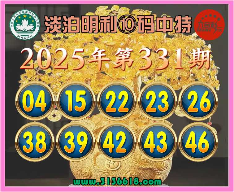 331期:【淡泊明利】 🏵️⑩码中特🏵️开:26准上榜高手