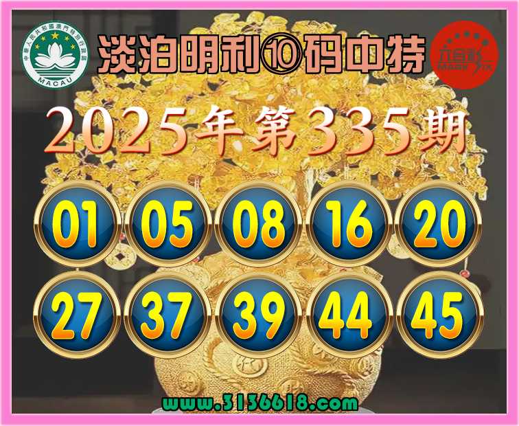 335期:【淡泊明利】 🏵️⑩码中特🏵️开:44准上榜高手